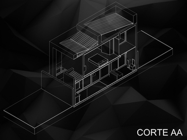 Projeto beneficente de uma residência de 2 pavimentos, situada em terreno praticamente triangular. Para este projeto, foi também desenvolvido um mezanino em madeira.